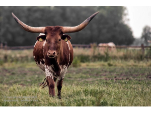 Vader CMF T-Bone brengt weer heel andere eigenschappen met zich mee. De fantastische kleuren, zijn “ brindle” = gestreept patroon, en spotjes , de kleine vlekjes op zijn lichaam. Hij heeft deze gewenste kleuren doorgegeven aan zijn dochter. Ook is hij verantwoordelijk voor de dikke “hornbase” die we bij CMF Confetti zien en natuurlijk ook zijn grote hoorns. En tel daar zijn droomafstamming bij op en je begrijpt waarom we zo trots zijn om deze dochter van hem bij ons op het bedrijf te hebben. CMF Me Oh My heeft bijna dezelfde afstamming als CMF Confetti. Zij komt direct uit grootmoeder CMF Starbase Fashion. Ze hebben wel beide dezelfde vader CMF T-Bone.