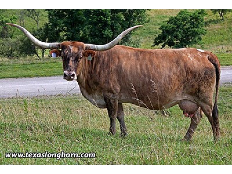 Bizarre lives up to its name. What a beauty! Unrivaled in the longhorn business. A beautiful tricolor striped strong cow. And one blessed with huge twisted horns of almost 70 inches. She has a dream lineage. Her sire Victory Lap alone makes the longhorn enthusiast's ears prick up. You want this bull in the pedigree. Her dam Bella Bellucci is the full sister of Diepenhoek Unshadow, Diepenhoek Unshady and Diepenhoek Unshadowy. We bought these cows as embryos in America. Our livestock is largely natural animals. https://www.texaslonghorn.com/reference/index.cfm?con=reno&Reg=I-249018